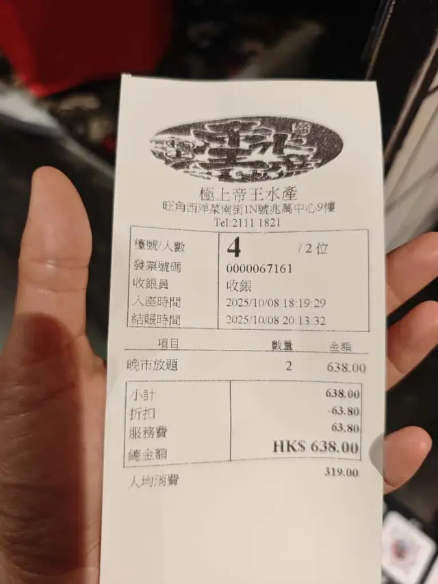 總結:$319免加一,刺身、燒肉、火鍋、泰菜任食,食物款式多元、質素有驚喜,服務又好,環境舒服,性價比極高。旺角放題新選擇,值得推介!如果想同朋友輕鬆聚餐,食到飽又唔傷荷包,「極上帝王水產」絕對係心水之選!🌟