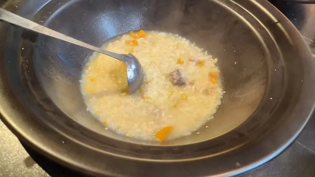 第二,蒸海鮮留肚飲精華! 蒸海鮮嘅時候,鍋底會墊咗一層薄薄的米,呢個係之後煲粥嘅關鍵。蒸完海鮮,鍋底會積聚一灘金黃色嘅「海鮮精華水」。千祈唔好覺得佢唔係湯就倒咗佢!呢啲水係寶嚟,可以直接當湯飲,鮮到不得了!飲完呢啖「原湯」,你先會明白咩叫「鮮味」嘅根源。