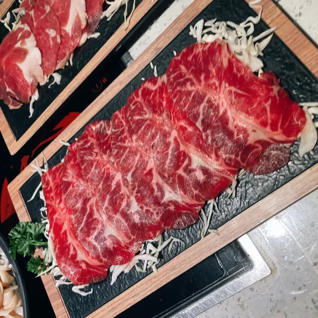 身為食肉獸,呢個牛板腱完全冇令我哋失望。牛肉嘅色澤好靚,油花分佈均勻,睇見都流口水🤤。輕輕喺卜卜蜆湯底涮個幾秒,牛肉仲帶少少粉紅色就即刻擺入口。肉質好嫩滑,牛味超級濃郁,仲吸收咗湯底嘅蒜蓉鮮味,口感層次好豐富,唔需要點任何醬料已經夠晒好食。