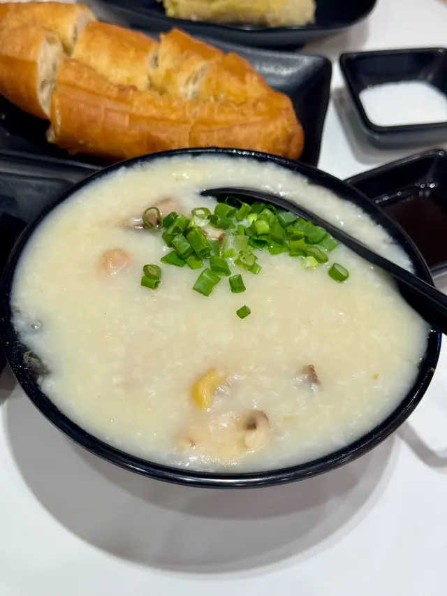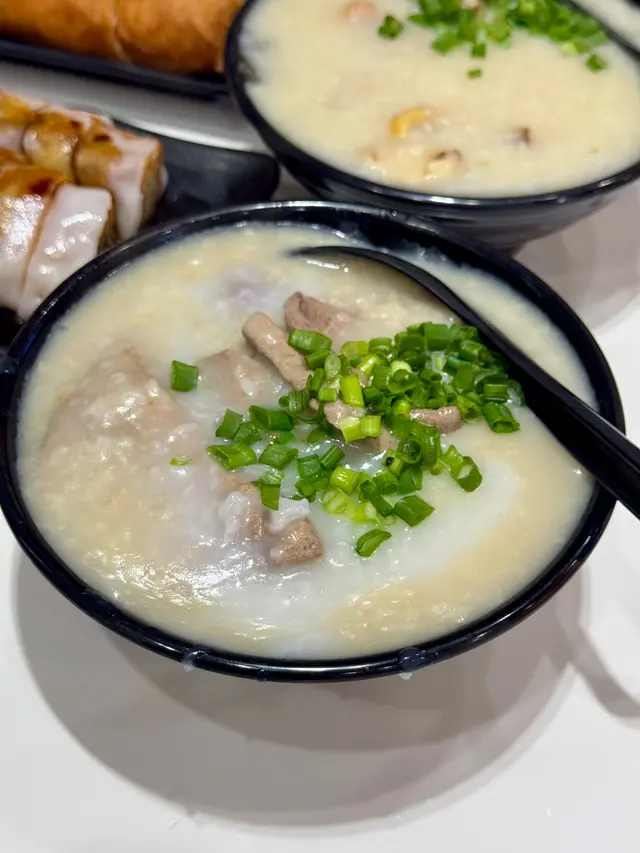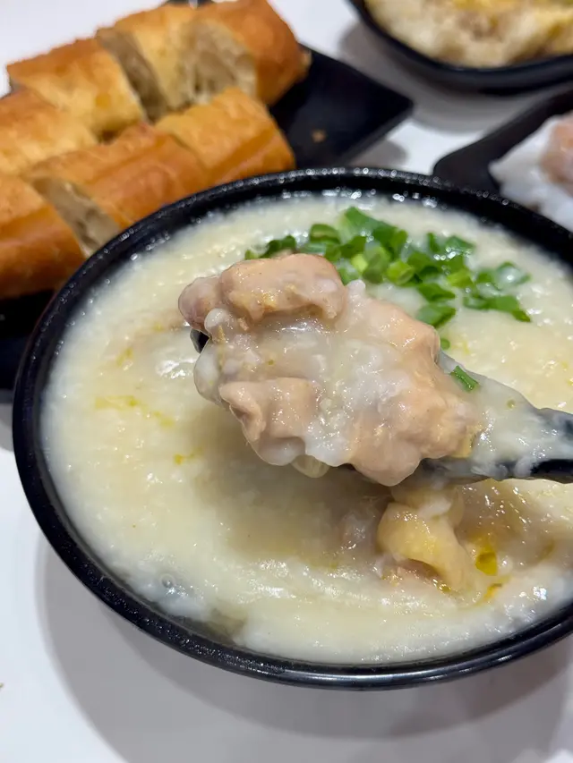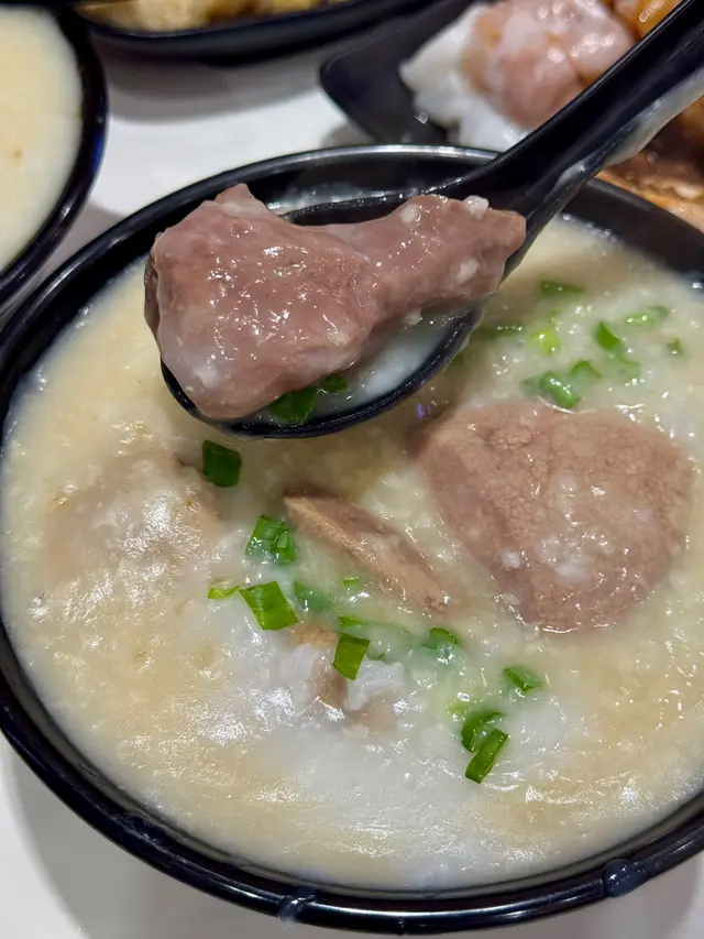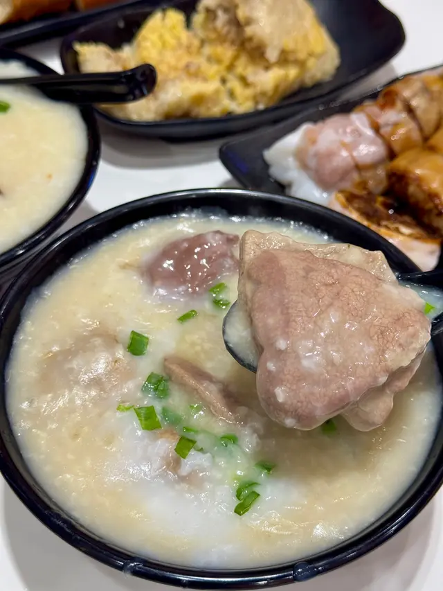 首先粥品煮得恰到好處,滑順而不黏,搭配的豬潤口感滑嫩,另加上嚼勁豬心,口感層次豐富,讓人感受到滿滿的暖意。