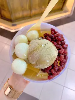 入面有清茶寒天 紅豆 焙茶雪糕 白玉4粒
