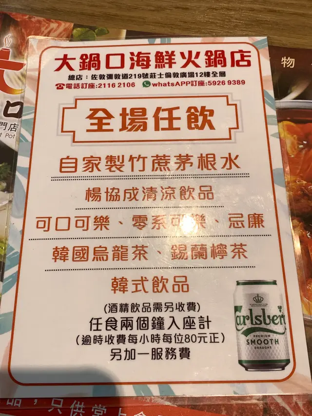 最抵食既-任飲任食打邊爐 Panda0828等級32022-10-272K 瀏覽 關注 最抵食既-任飲任食打邊爐又黎到我搵野食時間。朋友介紹呢間任飲任食打邊爐,2小時任飲任食,張枱有埋調味料俾大家揀,一開始會俾雞煲我地食先其後再揀湯底⋯我地都叫左好多野食,野食又冇甩單⋯記得叫海蝦⋯好好食野飲仲有自製竹蓆茅根飲,一支咁囉番埋位、都倒到6杯出黎呢間野都幾full, 最好卜定位先環境都好好坐,如果好肚餓人士記得食呢間😂🤣1以上食評乃用戶個人意見 , 並不代表OpenRice之觀點。讚好分享最抵食既-任飲任食打邊爐 大鍋口海鮮火鍋店 https://s.openrice.com/QrbT0uXD600檢舉 張貼 評分3味道4環境4服務4衛生4抵食用餐途徑堂食
