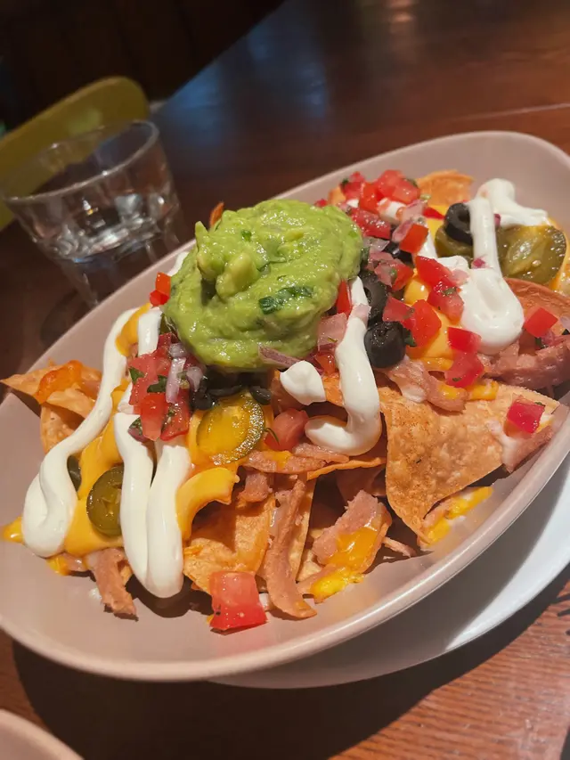 有:蕃茄莎莎、牛油果醬、橄欖、純素車打芝士、玉米片