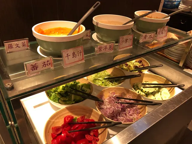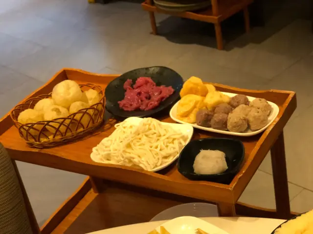 出面有自助沙律吧,有D菜可以食下,亦有火鍋醬汁~