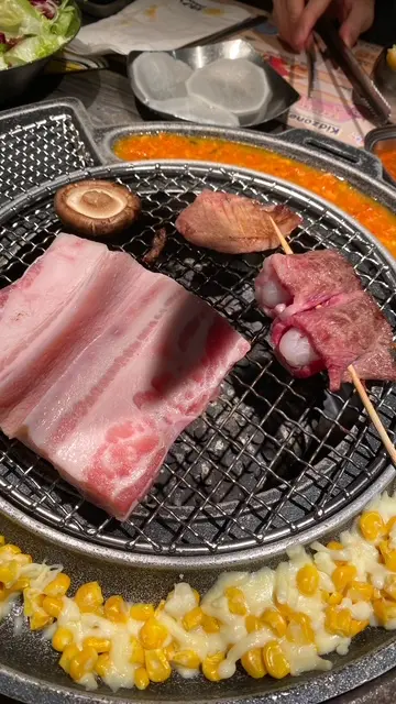 牛胸腹肉片堆成小樹,油脂在炭火上吱吱作響。每一片入口,肉香濃郁,油花細膩,咀嚼間融化,彷彿冬夜裡的一團暖意。