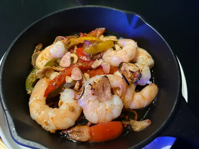 這道菜以西班牙辣虎蝦為主,搭配了蒜片和欖油。西班牙辣虎蝦有濃郁的辣味和鮮美的蝦肉,非常開胃。蒜片與欖油的組合為整道菜增添豐富風味,並提供了濃郁的香氣。