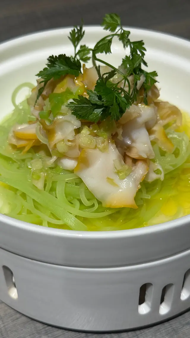 $149「蔥香角螺(高筍)」:角螺切成薄片夠爽脆,爽脆係因為非常新鮮🤣;仲有大量都係好爽脆嘅萵筍絲可以食🤣