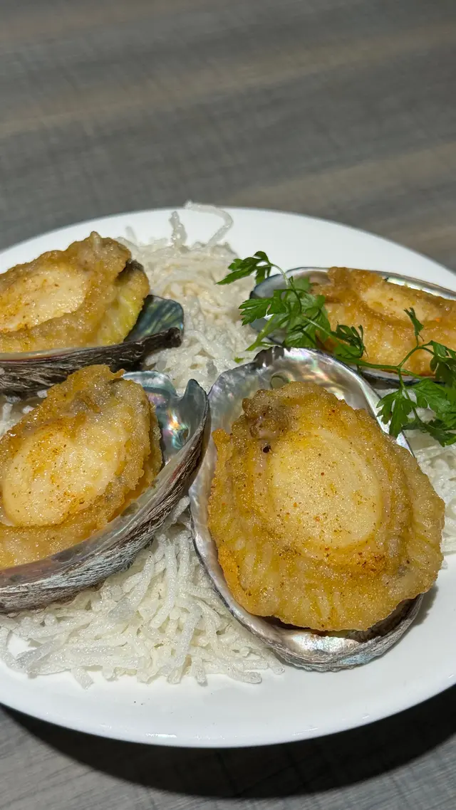 $159「椒鹽大鮑魚」:鮑魚一共4隻,隻隻都大大隻,肉質結實又爽滑,估計係撲咗薄薄嘅乾粉輕輕炸過,再加椒鹽,香口得嚟非常好食,超正🤣