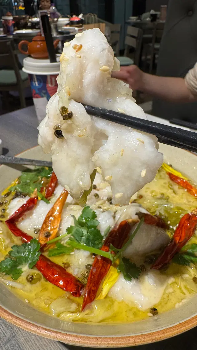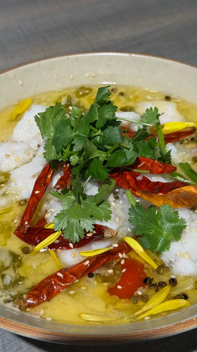$149「酸菜龍躉」:用一個大碗裝住,裏邊有好厚肉兼鮮甜嘅龍躉,仲有好多其他配菜包括 紅椒乾、薯粉、花椒、芫荽、芹菜、香蔥 等,材料都相當豐富🤣
