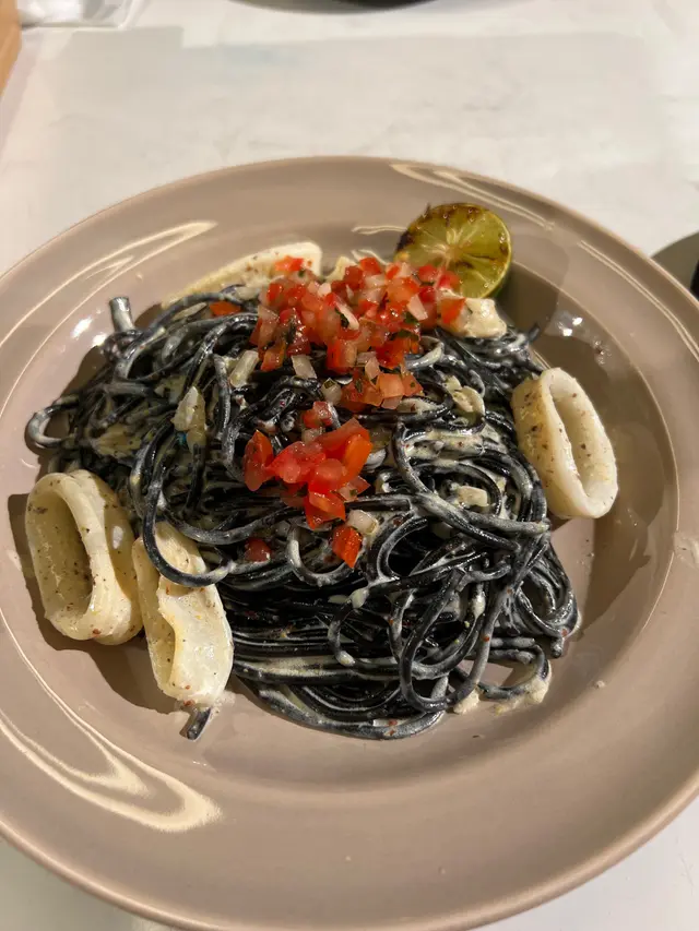 魷魚,pommery芥末忌廉汁墨汁意粉 & 蕃茄莎莎