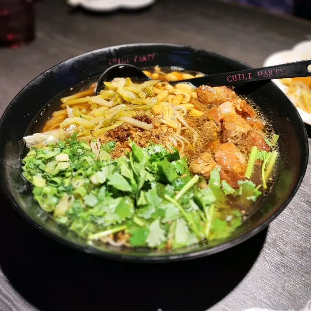 紅燒排骨麵:紅燒的醬汁掛在排骨和麵條上,每一口都能夠品嚐到湯汁的醇厚和排骨的鮮美。再配上蔥、香菜、花生、肉沫和榨菜,使這碗麵更美味可口。