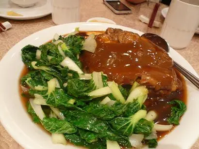全晚最期待的,肯定是紅燒元蹄了。其實賣相已不很對辦,毫無濃油赤醬的感覺。元蹄肥肉部份是預期之中的甘香溶化,可是瘦的位置並不鬆化,加上醬油調校的失衡,是失色的一道菜,旁邊的白菜仔也無用武之地。