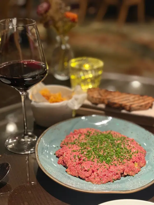 店員推出車仔即席在客人面前加入不同調味,最後會放上一顆生蛋黃.結合了生肉的鮮美與各種配料的辛香和酸度.份量巨多,建議多人共享