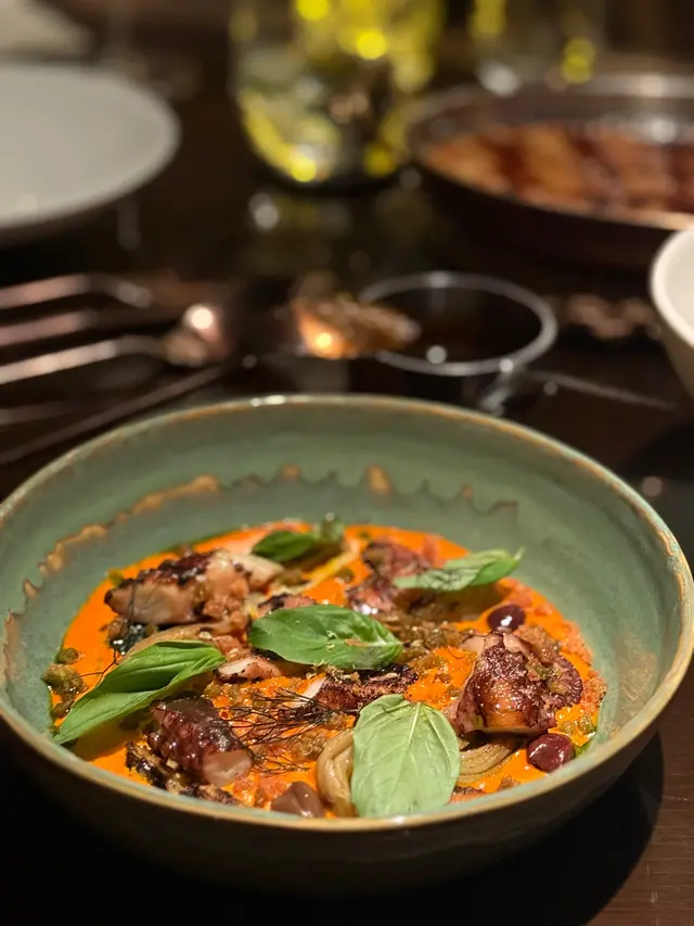 還未到主菜已精彩絕倫,主菜當然是無疑的好.地中海風味烤章魚柔軟新鮮,醬汁有烤過紅椒、番茄、堅果的香氣,很幼滑.黑松露麵疙瘩軟糯,壓出的紋路吸附著黑松露及洋蔥醬汁,滋味又邪惡!