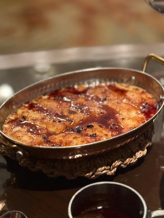 特愛ꜱᴀɢᴏ & ᴍɪᴍᴏʟᴇᴛᴛᴇ "ᴀʀᴀɴᴄɪɴɪ "及ᴄᴏɴꜰɪᴛ ʙᴇʟʟ ᴘᴇᴘᴘᴇʀ.前者是炸至金黃色正方體的西米露飯團,法國硬質芝士與西米融合,既香脆又鹹香,口感獨特.一口接一口;後者油封甜椒在低溫下用油慢煮,達至柔軟.加入布拉塔起司奶油,橄欖油與羅勒,入口滑順又有層次