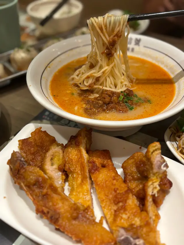 🍜 排骨炸到金黃色啖啖肉, 配上香濃花生擔擔肉燥同彈牙軟滑麵條, 啖啖都好滿足
