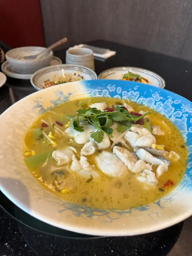 酸菜桂花魚- 侍應介紹是用上新鮮的桂花魚,肉質鮮嫩多汁,搭配酸菜的酸味和辣椒的辣感,口感酸爽又帶有一絲麻辣, 特別係食到原粒花椒時, 椒麻味瞬間釋放。