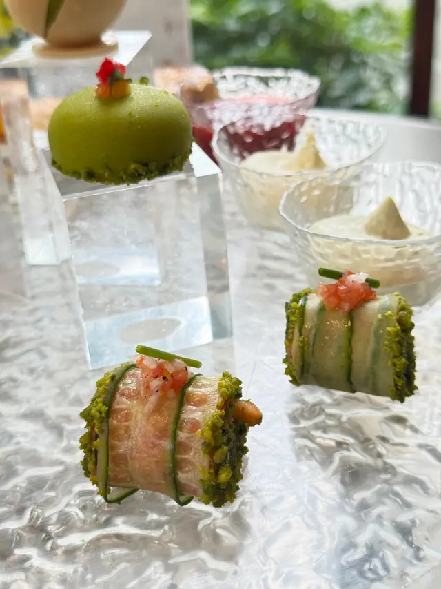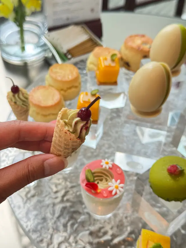 本身以為全開心果嘅下午茶會好漏,不過呢個set全部都細細,好精緻,分量剛剛好! 最吸睛係頂層嗰兩粒開心果樣既mousse cake 𓐎 𓐎