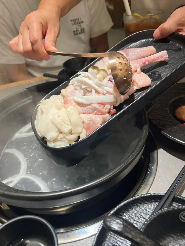 湯底滾起之後,店員就幫我哋落雞再煲4分鐘,跟住店員就幫我哋上菜,先飲湯、食雞。