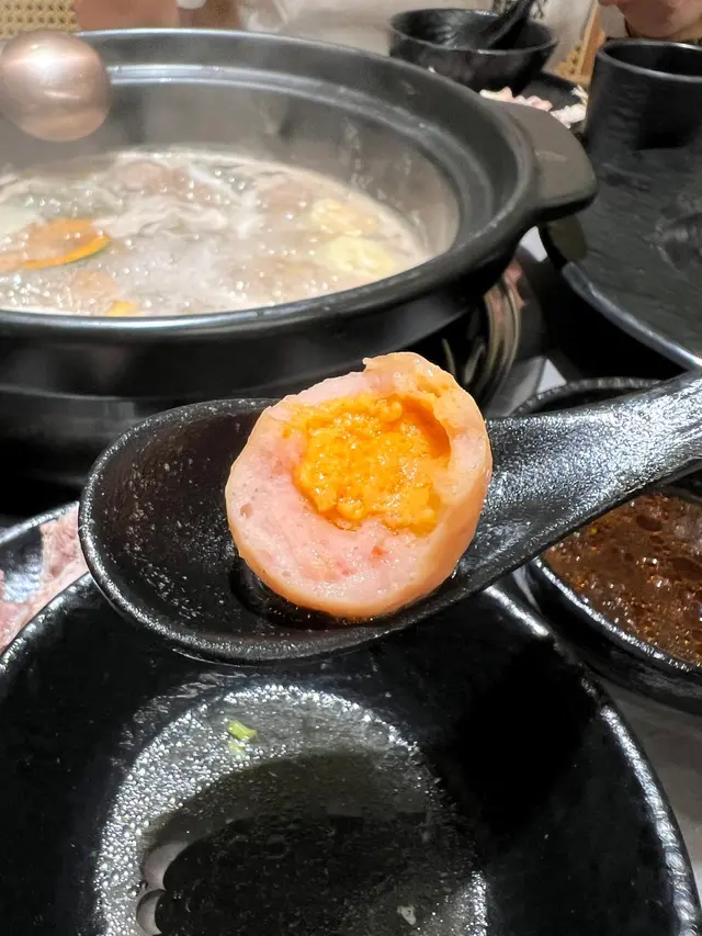 鹹蛋黃蝦丸超足料,鹹蛋黃味超咸香,好正呀!! 一咬就咇蛋黃油出嚟!!
