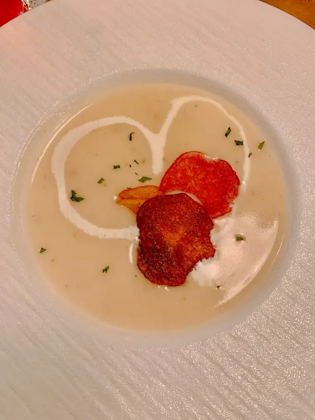 是日餐湯(跟餐$30),蘑菇忌廉湯,表面鋪有炸脆片,口感Creamy,內有蘑菇粒。