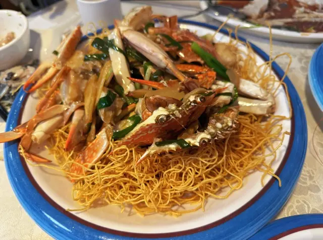 -蟹肉剛斷生,腿肉仍保持著半透明的質感炒麵外層爽脆微焦