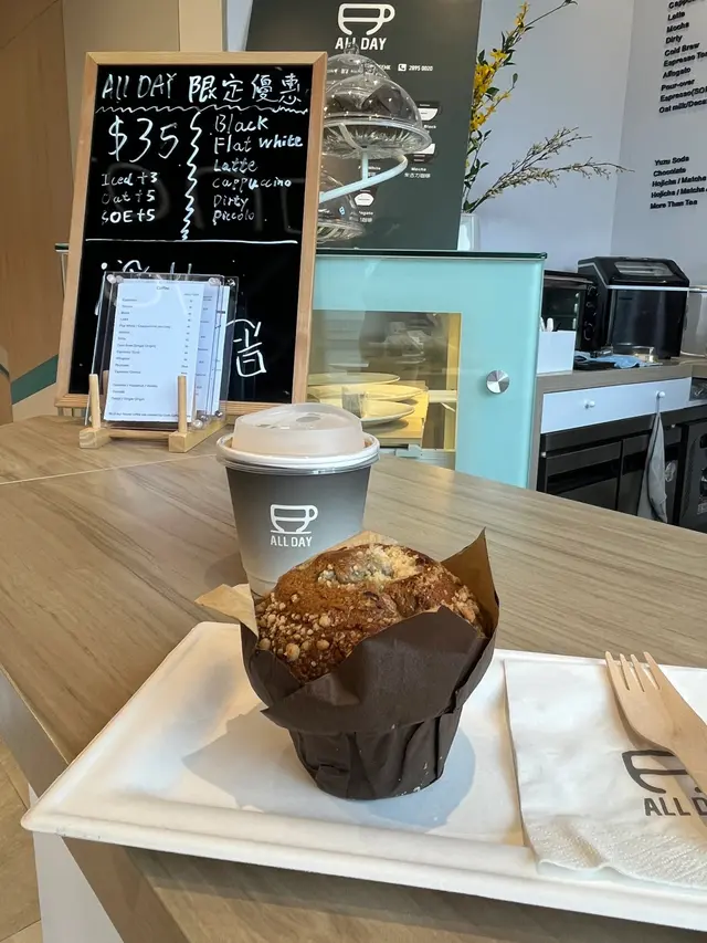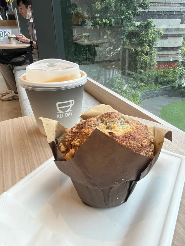 order了他們家的 Latter muffin,這是一件相當出色的甜點。外層是酥脆的馬芬蛋糕,內裡則是綿密濕潤的乳酪餡,融合起來口感層次豐富。咖啡的部分我選擇了經典的拿鐵,奶泡細緻,咖啡香氣飽滿,為整個用餐體驗增添了不少情調。