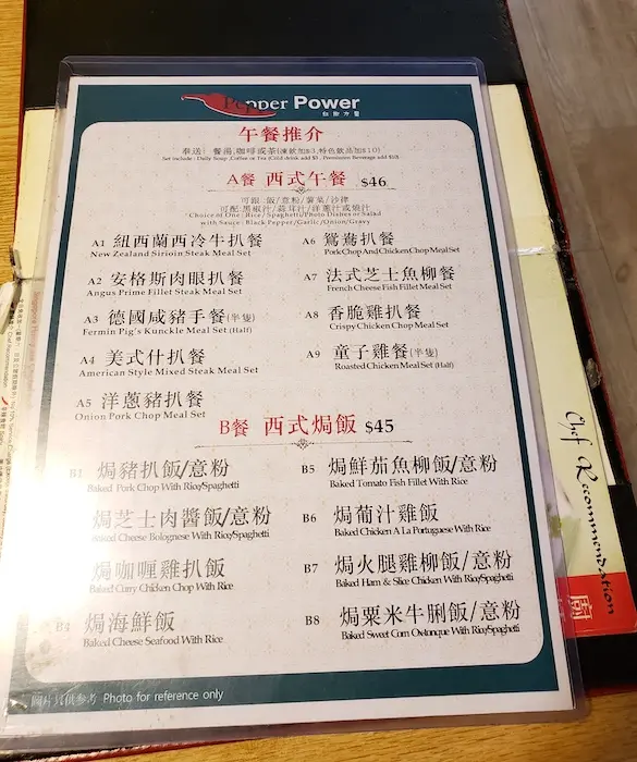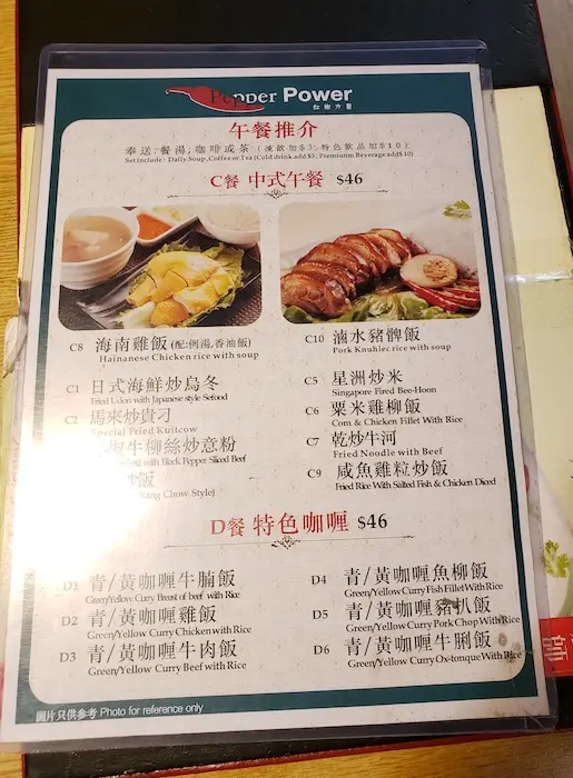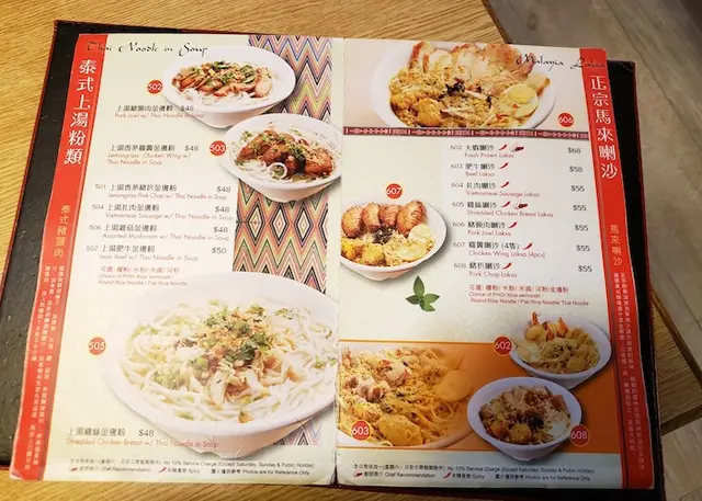 我們到來的時候是中午,餐牌上有多款中西式午餐外,另有很多單點選擇,海鮮、小菜、炒粉麵、喇沙湯麵、小食、飲品等的泰國和新加坡菜式,應有盡有,真的很不錯。
