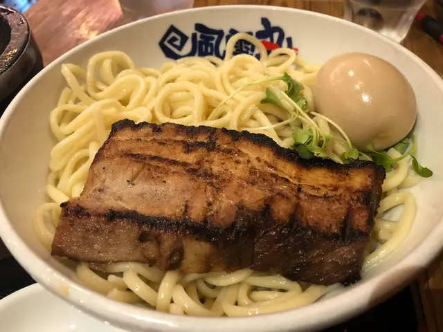 所以我哋就一人一個沾麵 佢點左豚骨魚介味玉沾麵 $93 我呢就梗左期間限定既 鮮牛油忌廉魚介沾麵$98