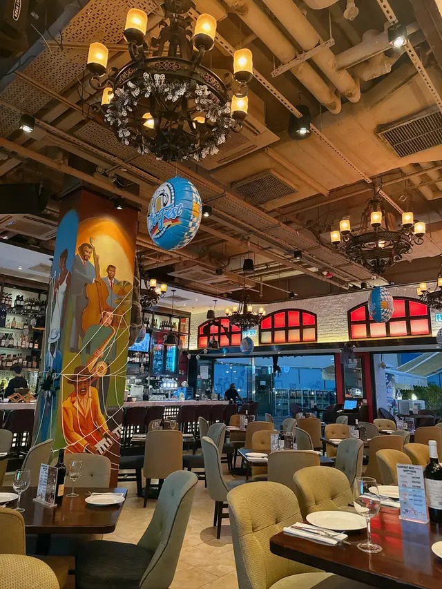 今日同 👧🏽 入東涌搵間喺海濱隔離嘅異國風嘅餐廳撐枱腳 。餐廳嘅設計用上唔同色彩同掛畫牆畫,十分鮮艷 。臨近萬聖節,餐廳加咗萬聖節元素嘅裝飾同擺設,融入成個環境,十分有趣盞鬼 。最入仲有大銀幕播放體育節目 ,啱晒波牛 。睇真啲仲有個表演台,原來逢五六日同假期仲會有Band show添 。
