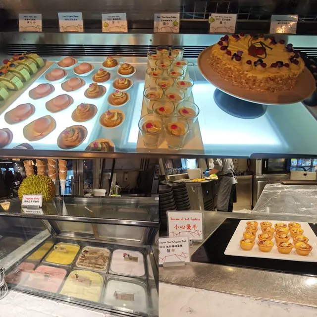一入門就被榴槤甜品區吸引住,不愧係主題自助餐,D24榴槤用料超足!最愛個爆漿榴槤泡芙,外皮鬆軟,咬開嗰下榴槤餡料「噴」出嚟,果香超濃,完全唔會甜到漏;榴槤布甸入口即化,蛋香同榴槤味纏埋一齊,連平時唔太鍾意甜品嘅朋友都連食兩件;芝士蛋糕頂層嘅榴槤泥厚到肉眼可見,鹹甜交錯,口感好豐富,榴槤控真係會食到停唔到口!