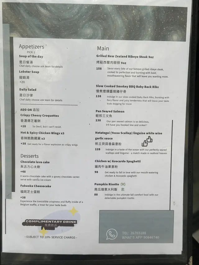 大角咀除了奧海城外,其實附近的街道上也有性價比高的餐廳小店。這次到訪為於博文街的Starry Night 是一間以梵高主題作裝飾的西餐廳,週末中午人流不多,適合幾個朋友的小聚