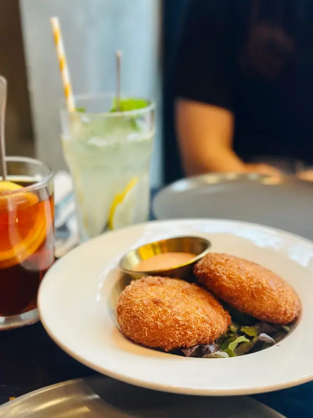 🍴香濃爆芝薯餅 (+$28) 香脆不油膩💛切開即見軟熟流心芝士,薯餅亦夠香甜,可沾上微辣的蒜味沙律醬