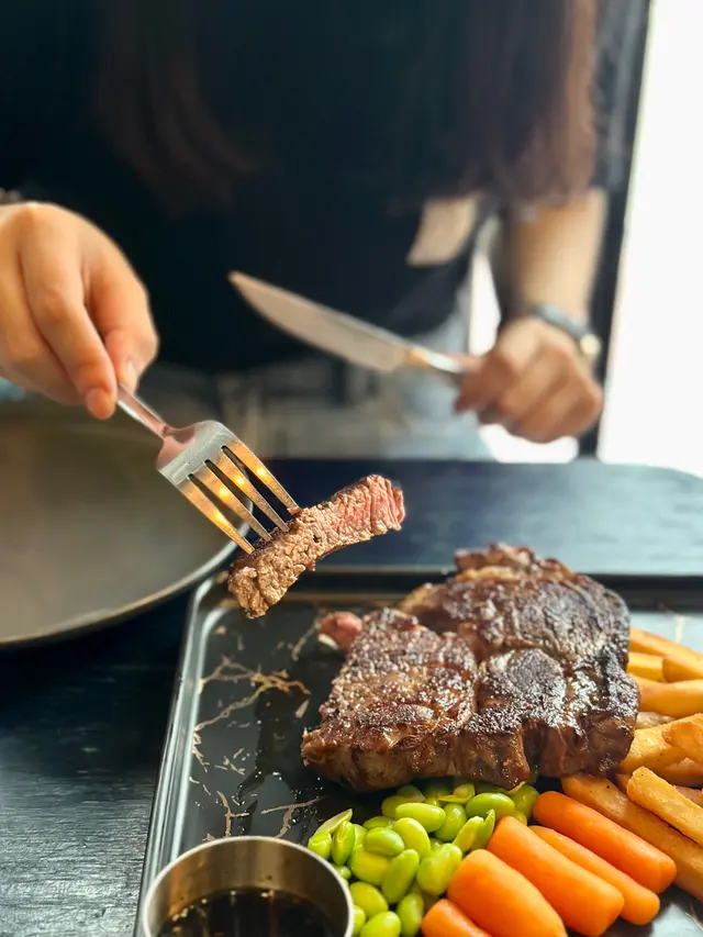 🍴烤紐西蘭肉眼排 9oz ($158) 選了七成熟,切開中間還帶微粉,肉味香濃,沾上一點胡椒鹽便很讚👍🏻薯條也很香脆