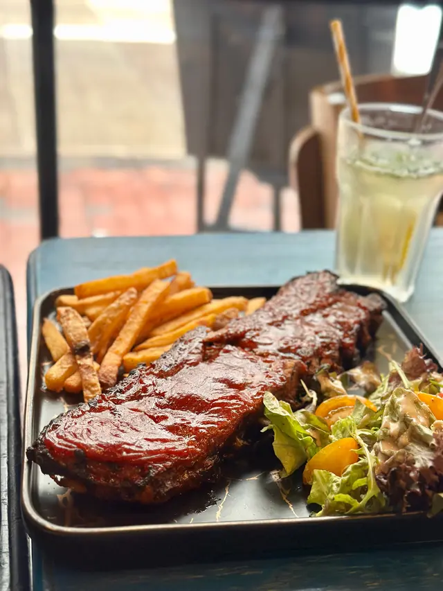 🍴慢煮煙燻醬燒豬仔骨 ($138) 超大一整條,BBQ醬味濃,是很美式的豬仔骨👍🏻很適合配啤酒
