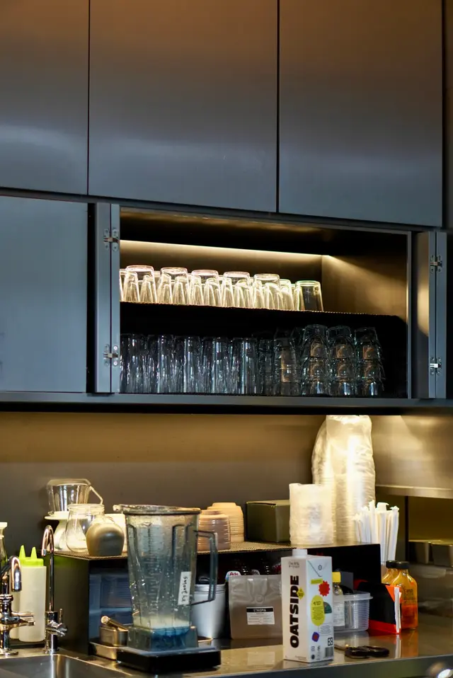 店里还有一面颜色会渐变的天窗,哪怕在阴天也能持续输送着晴朗。不过店面所在的这一侧下午晒不到太阳,要看书自习的话光线还是暗了一些。
