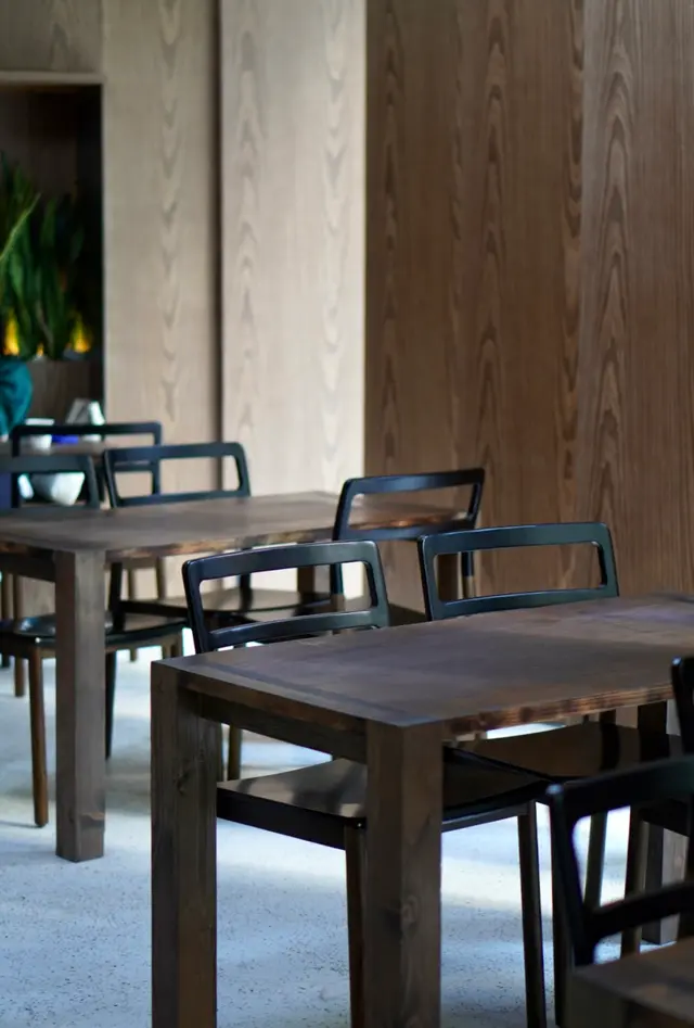 这家木系咖啡馆低调得连店名都不容易注意到,但设计是完完全全长在我审美上的。最喜欢木板拼接成的、半开放式的店门,既隔开了一处宁静休憩的空间,光影又能从缝隙中渗透,营造出与自然你中有我、我中有你的贴合之感。