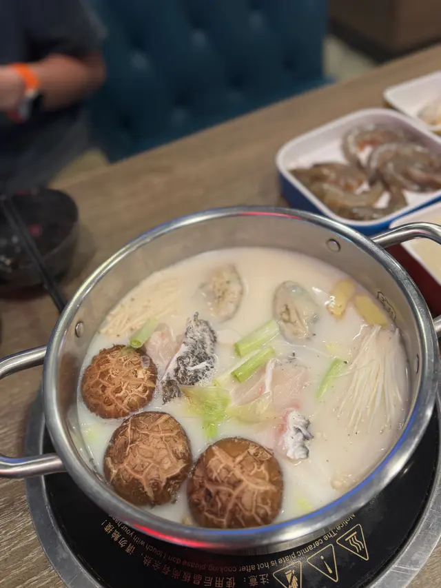 食完雞煲打邊爐,叫左旺角分店限定龍躉生蠔魚湯,湯底鮮味十足,湯色奶白、濃郁鮮甜、口感層次豐富的高級湯品。味道核心是「鮮」——一種純淨、深沉而自然的海洋之鮮,沒有多餘的調味料掩蓋,喝的是食材最本真的味道。龍躉的魚頭和魚骨熬製。龍躉的膠質非常豐富,經過長時間的熬煮,膠質完全融入湯中,帶來濃稠掛唇的質感和深邃的魚鮮味。這種鮮味醇厚而溫和,是湯底的骨架。