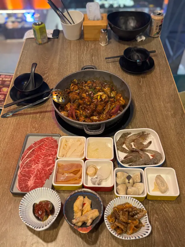 「極尚鮮味放題套餐」慢慢嘆足七個鐘,估你唔到有辣酒東風螺雞煲,尤其在秋冬季節,它結合了濃郁的香氣、鮮美的味道和溫暖的質感,讓人回味無窮。濃郁、鮮香、微辣帶酒香的熱辣煲仔菜。味道層次非常豐富,從第一口的鹹鮮,到中段的辣勁,再到最後迴盪的酒香和食材本身的甘甜,形成一個完美的味覺循環。雞肉:經過燜煮,雞肉(通常使用嫩滑的雞塊或雞翅)吸收了湯汁的精華,肉質鮮嫩,帶有濃郁的醬香和酒香。