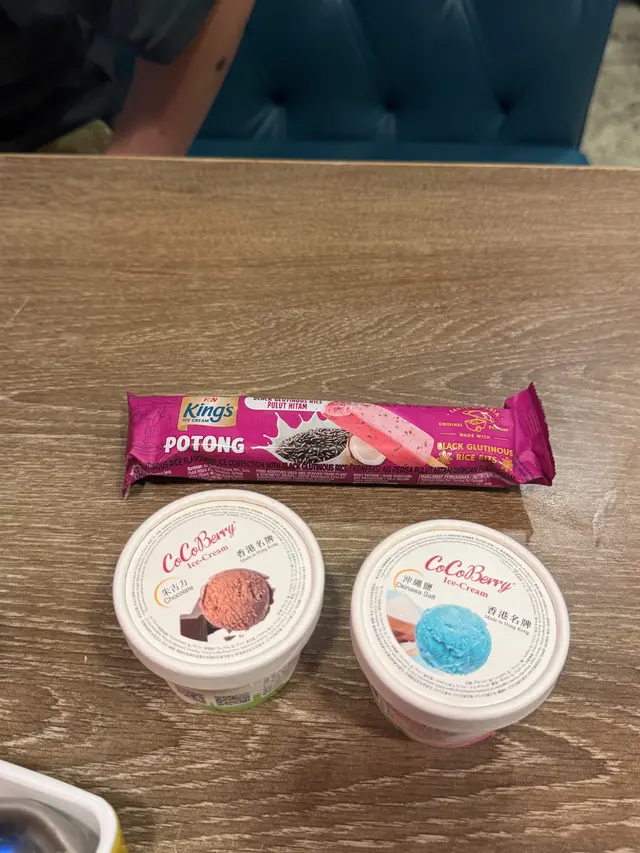 雪糕方面有香港製造本土沖繩海鹽味雪糕、泰國進口榴槤芋頭紫米雪糕。飲品方面有汽水,茶、飲水仲有嘉力、泰國啤酒🍻。
