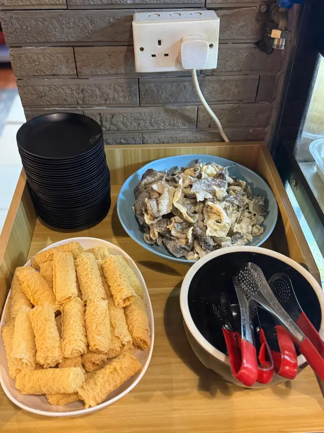 火鍋配料方面,食材眾多,牛板腱、新鮮海蝦、本地蝦滑、帆立貝、墨魚仔、仲有鳳城水餃🥟。仲可以自肋夾配料,點少得、脆炸魚皮、響鈴、茼蒿、西洋菜、油麥菜、各款丸類沙律丸等。