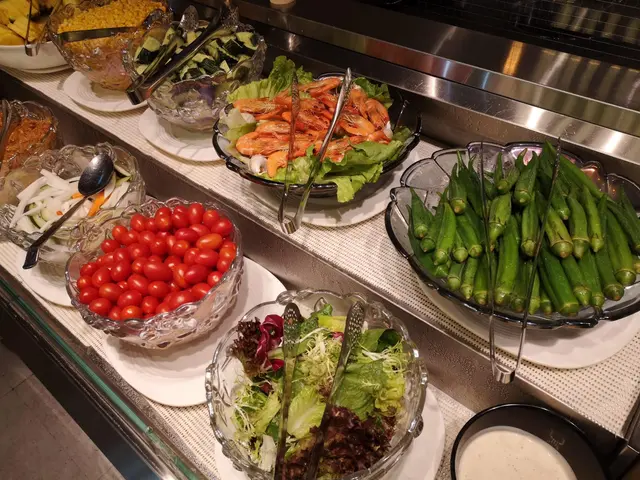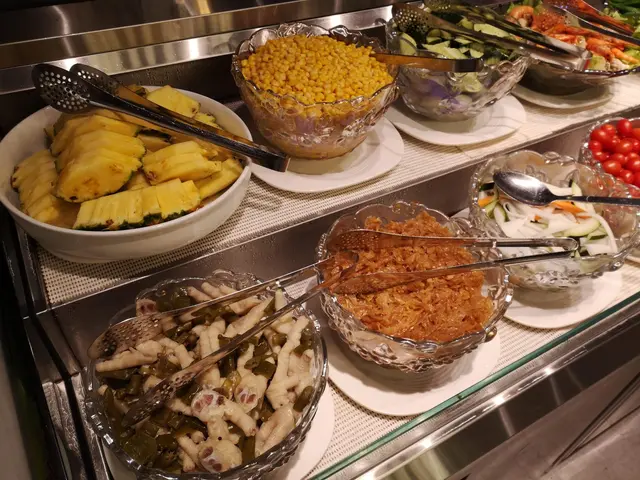 自助沙律吧, 非常推介泰式鳳爪酸酸辣辣夠入味! 海蜇皮夠爽,味道好得! 鮮菠蘿厚切勁甜。 酸蘿蔔條,秋葵也很健康美味!