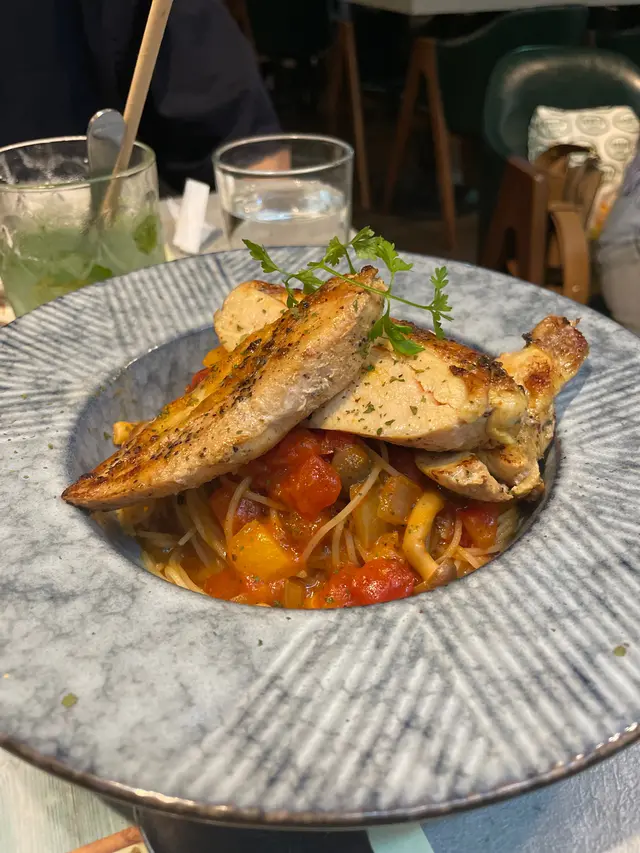 蛋白質滿滿嘅雞胸肉意粉,材料非常之足夠,雞胸唔會太嚡,配合埋酸甜到剛好嘅蕃茄汁,好香,意粉亦都唔會太腍或者太硬