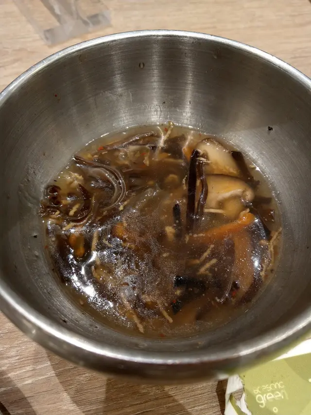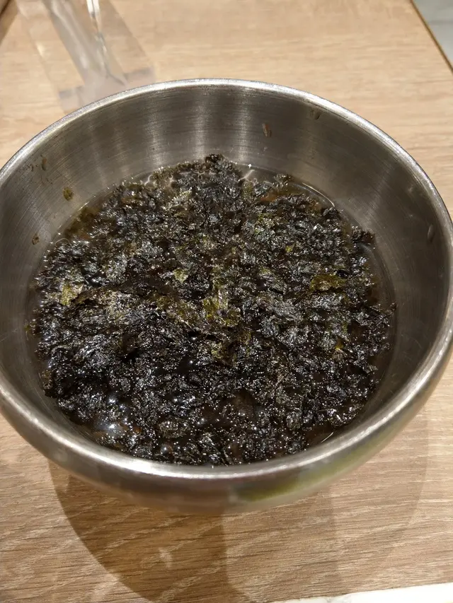 煮好了後,朋友才加入杏仁碎、紫菜和飯素。