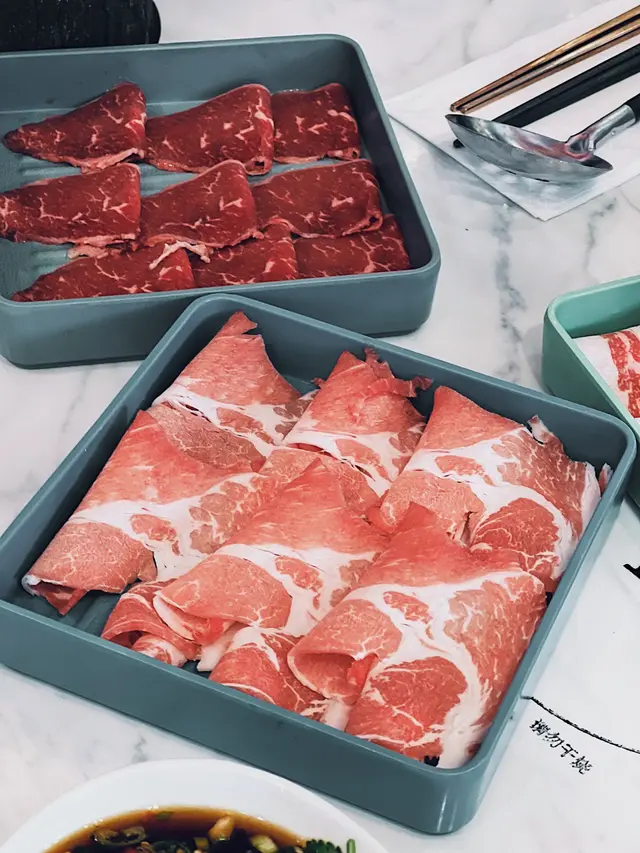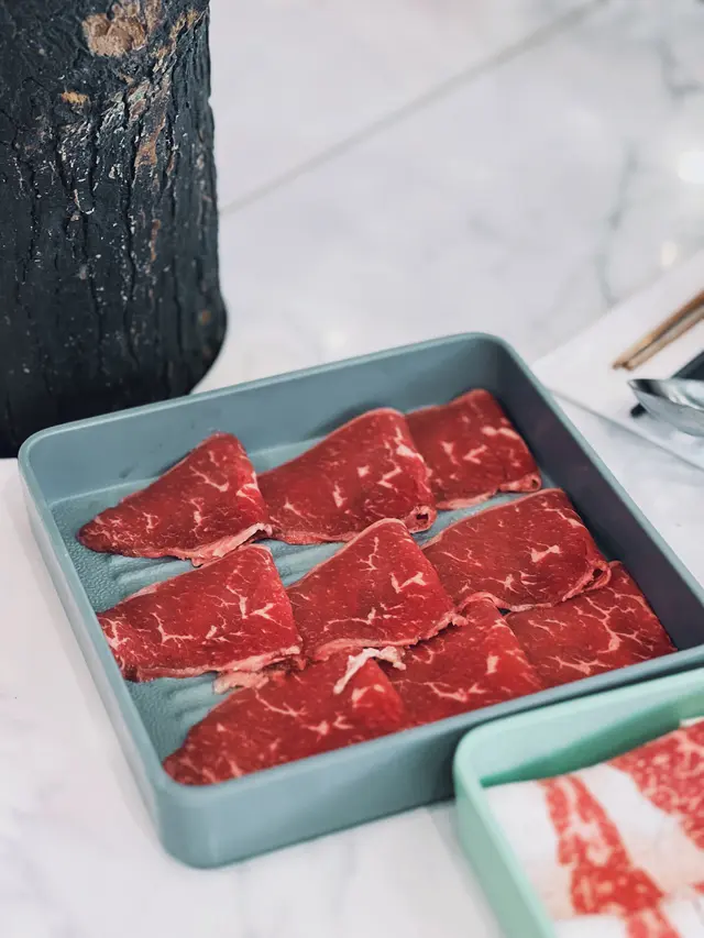 叫左套餐B $318,整體係以高質肉類為主打——有澳洲M7牛胸腹、澳洲M7大米龍、仲有日本鹿兒島茶美豚梅肉。最正係呢個套餐既牛、豬、羊都可以無限追加,分量同choice好夠彈性,加上超過50款火鍋配料同15款以上台式手調飲品,仲有多款泰式小食同台式甜品,真係食到飽又有好多選擇🍲🥢。