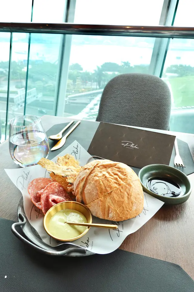 有農夫麵包、芝士脆片和蕯拉米火腿贈送,可蘸點他們家自製的刁草乳酪醬或單純的黑醋和橄欖油來進食
