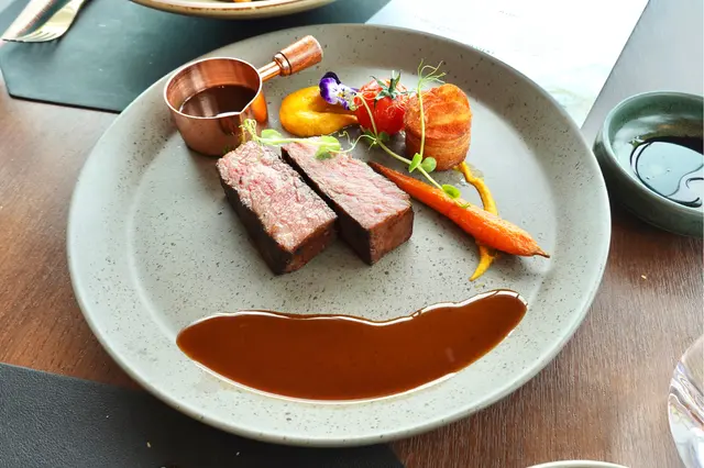 牛肋骨的外層煎得焦香,肉質非常嫩口且完全不油膩😲,說真的我有點被這完美口感給驚喜到了😍,肉味香濃,旁邊的配菜還有香甜幼滑的南瓜蓉、熟蕃茄粒和千層薯仔🥔
