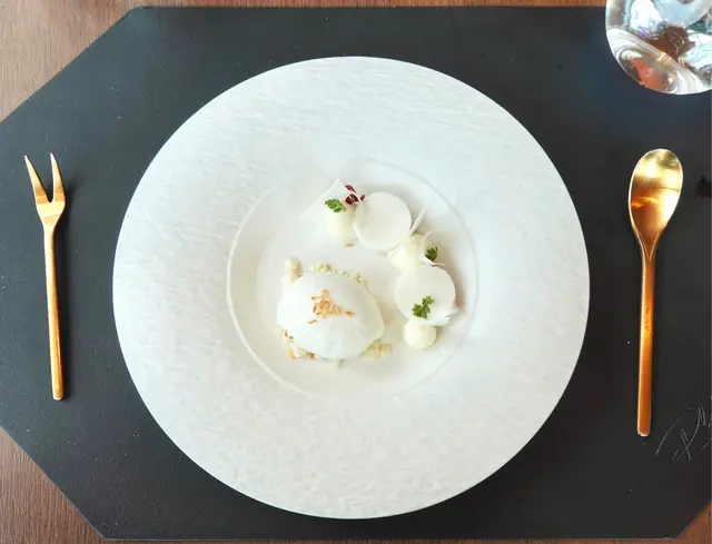 椰子雪糕口感幼滑細膩,帶有濃郁的椰子香味,非常清涼解暑🧊,底下還有小小的爆谷粒增添了口感,另外旁邊亦有迷你的椰汁奶凍,作為飯後甜點,為這頓大餐畫上完美句號💫