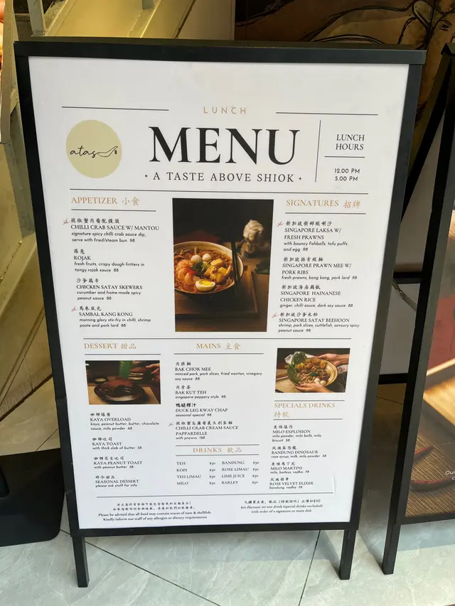正宗新加坡菜 HoiChing2300等級42025-04-03507 瀏覽 關注 今日專登出咗銅鑼灣同朋友食晏,佢帶左我黎呢間佢既愛店Lunch menu都幾多選擇👍⭐️羅惹Rojak 呢款沙律好特別!有瓜菜,有菠蘿,仲有我最估佢唔到既油炸鬼,搭配花生碎同埋甜甜地嘅汁,口感豐富得黎幾得意😂⭐️鴨腿粿汁湯底係肉骨茶底,好飲😋鴨腿入味,五花肉有啲韌1粿汁似陳村粉,好滑溜,比較闊身,個人黎講幾中意👍⭐️新加坡排骨蝦麵湯底微辣幾惹味,排骨唔韌麵底係摻摻(油麵+米粉),感覺正宗#銅鑼灣美食 #atas #新加坡菜推介 #喇沙 #肉骨茶 #海南雞飯50以上食評乃用戶個人意見 , 並不代表OpenRice之觀點。讚好分享正宗新加坡菜 A.T.A.S https://s.openrice.com/QrbT0M4rR00檢舉 張貼 評分4味道4環境4服務4衛生4抵食用餐日期2025-04-03用餐途徑堂食用餐時段午餐