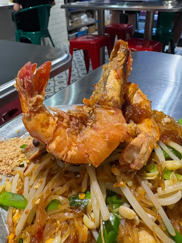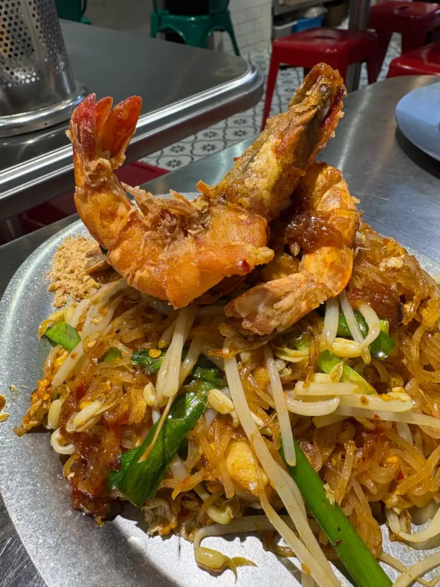 金邊粉Q彈,大蝦唔係雪藏蝦黎既,非常大隻,成個金邊粉炒得恰到好處,絕對係高分既泰式主食。🍤🍝